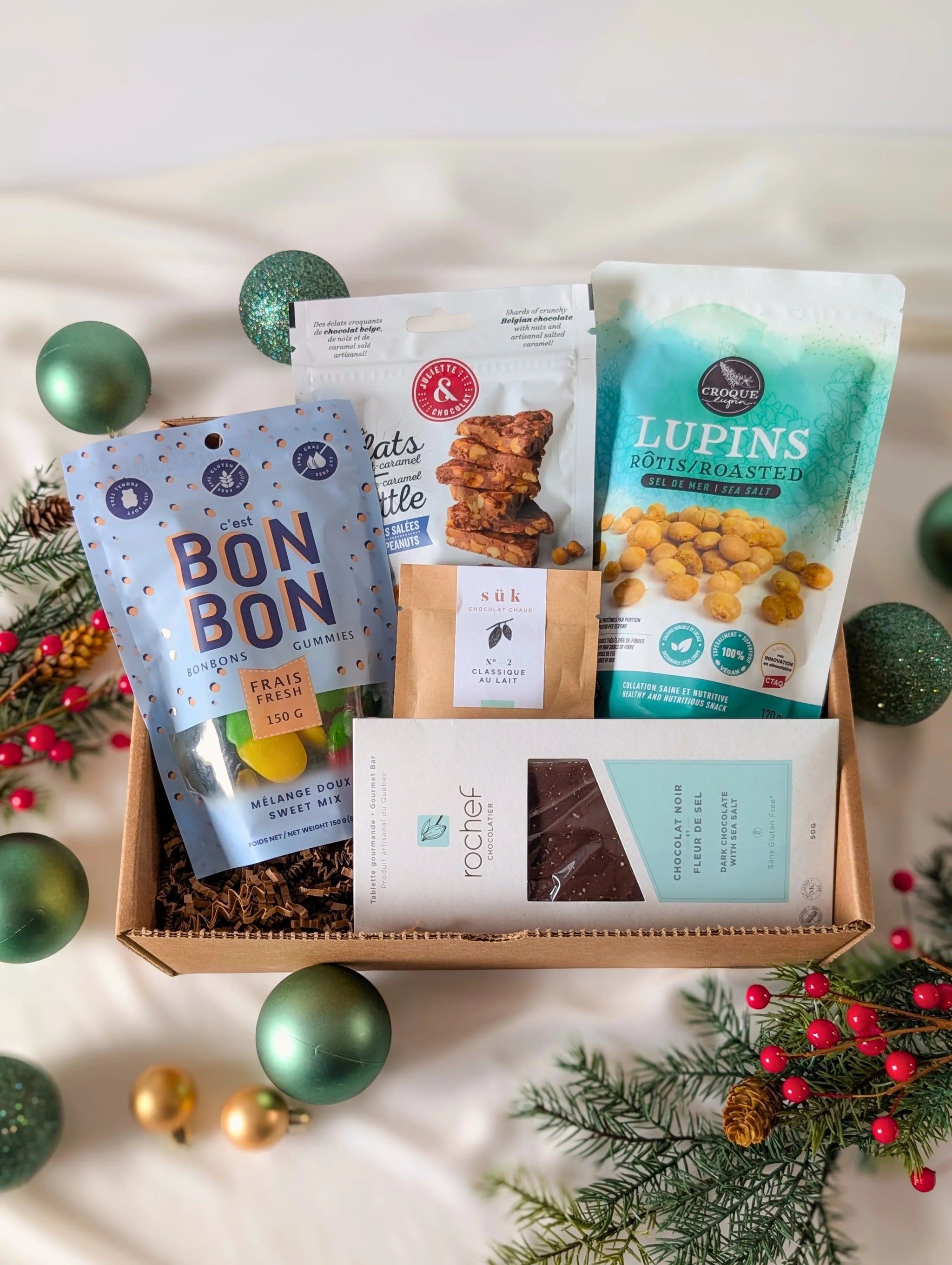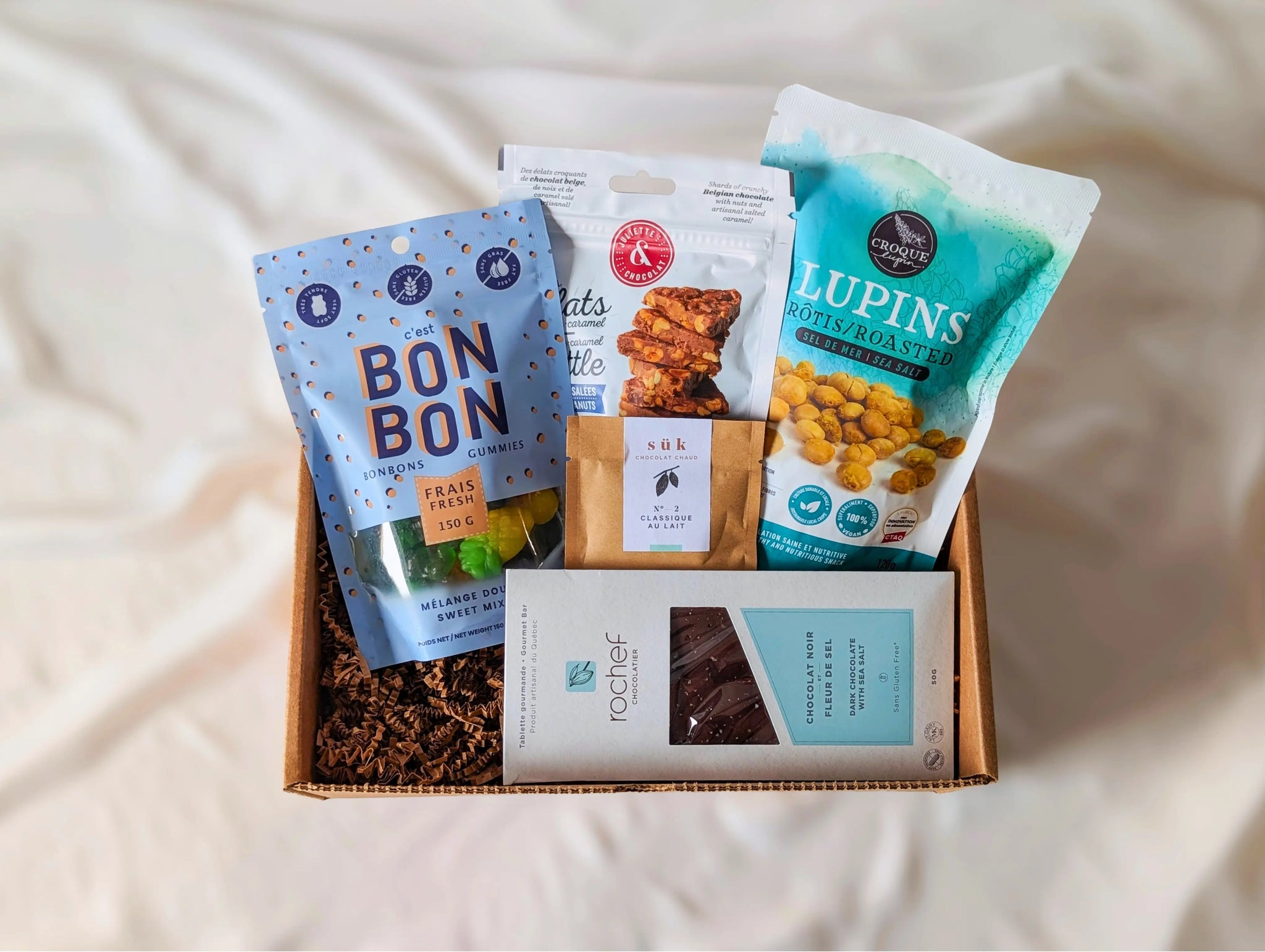 C'est pourquoi nous avons soigneusement assemblé des gourmandises avec emballage bleu, parfait pour un cadeau corporatif qui semble avoir été créé sur mesure pour une PME! De quoi sucrer/saler l’bec (et le cœur) de vos précieux employés avec un cadeau rapidement expédié (en 24-72 hrs ouvrables)!
