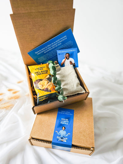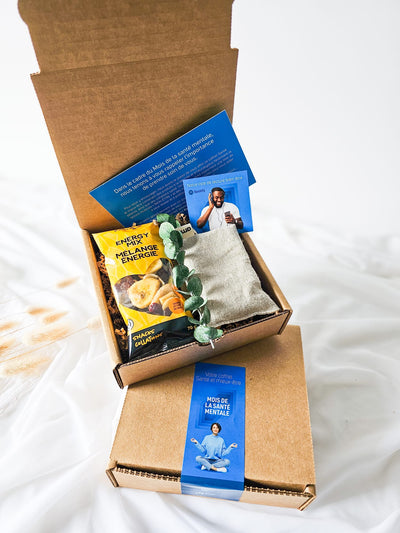 Pour bonifier l’expérience autour du contenu, Lissa a proposé l’ajout d’une playlist Spotify de musique de détente et des suggestions d’activités et des ressources en lien avec la santé mentale. Shop moi ça a conçu une boîte cadeau exclusive avec des produits artisanaux soigneusement sélectionnés, un emballage aux couleurs de l’organisation et d’une fondation partenaire et un message vidéo à l’intérieur de chaque boîte. La production et la livraison ont été gérées en moins de deux semaines et les 1250 boîtes ont été livrées par palette.