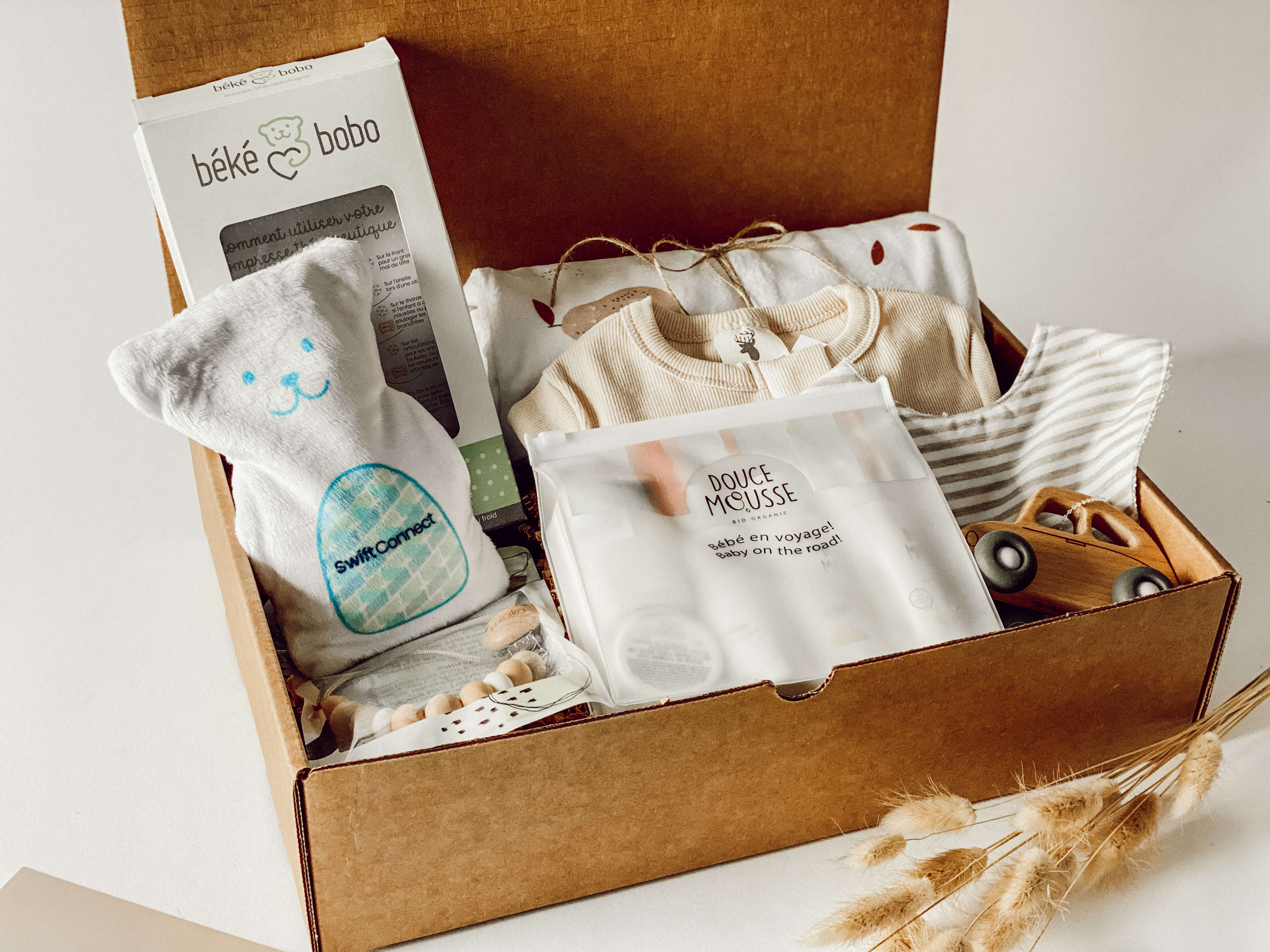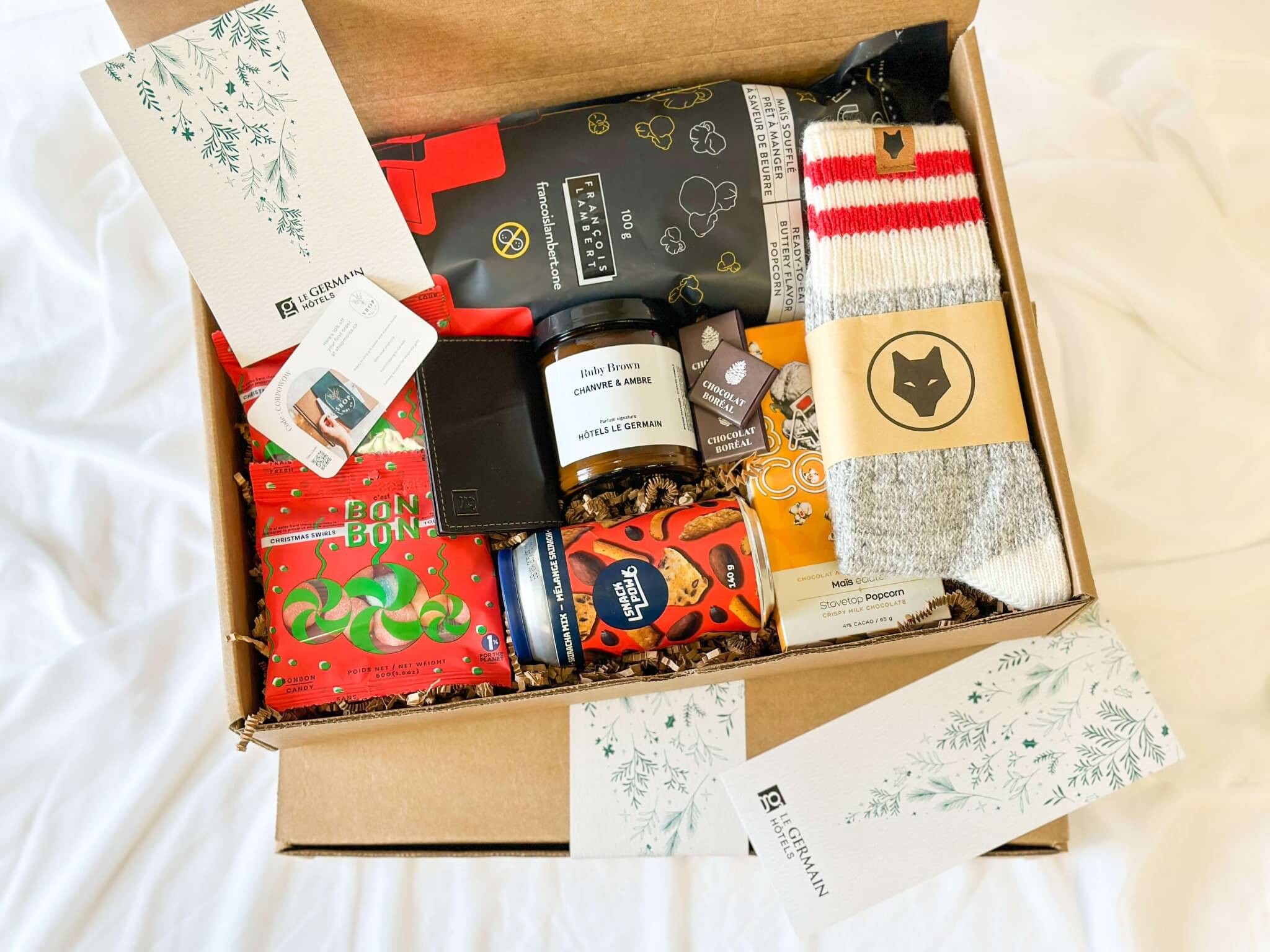 Nos boîtes cadeaux sont composées exclusivement de produits d'entreprises canadiennes, rehaussant ainsi l'aspect unique et haut de gamme de chaque article choisi.
