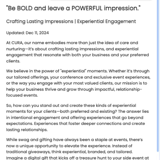 CURA Events | Crafting Lasting Impressions: Experiential Engagement