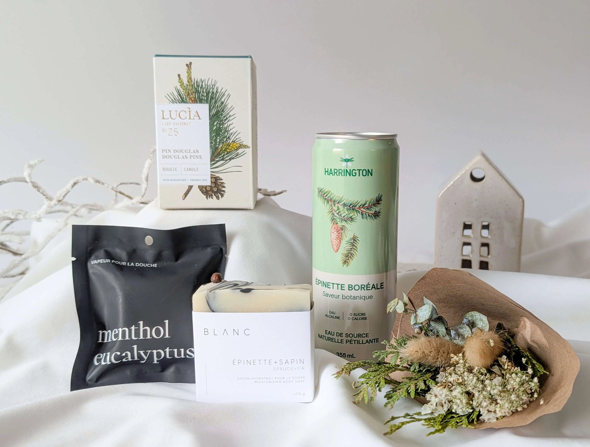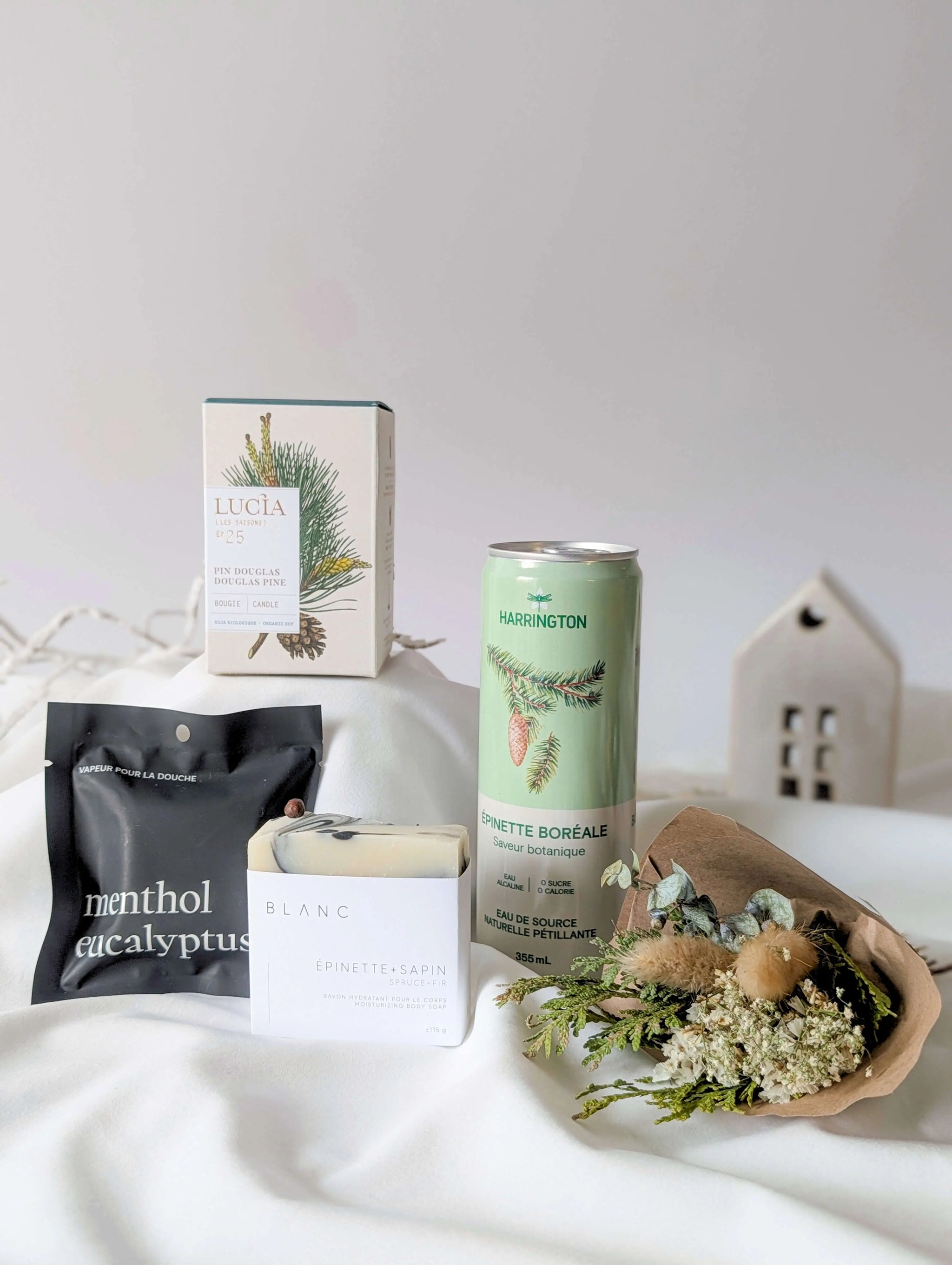 Inspirée des vastes forêts enneigées du Québec, cette boîte cadeau vous invite à ralentir et à reconnecter. Chaque produit a été sélectionné pour créer un moment d’apaisement, comme une marche en forêt un soir d’hiver : calme, vivifiant, ressourçant.