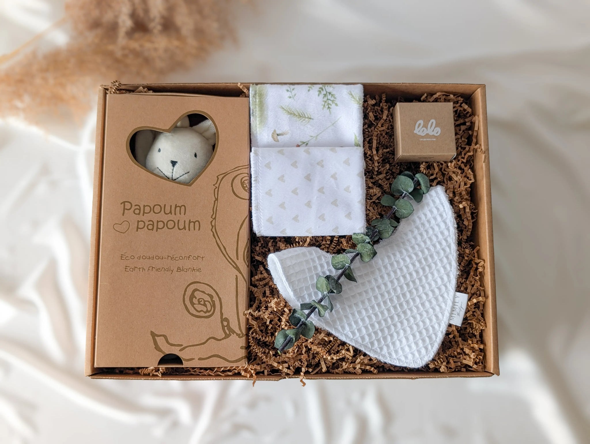 Boîte idéale pour *tous* les parents et leur poupon nouvellement arrivé (qualité, utilité et cuteness, bonjour!)