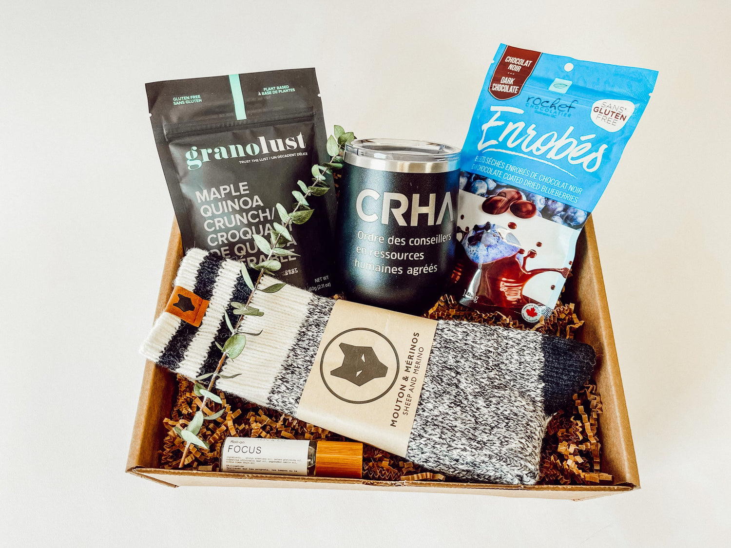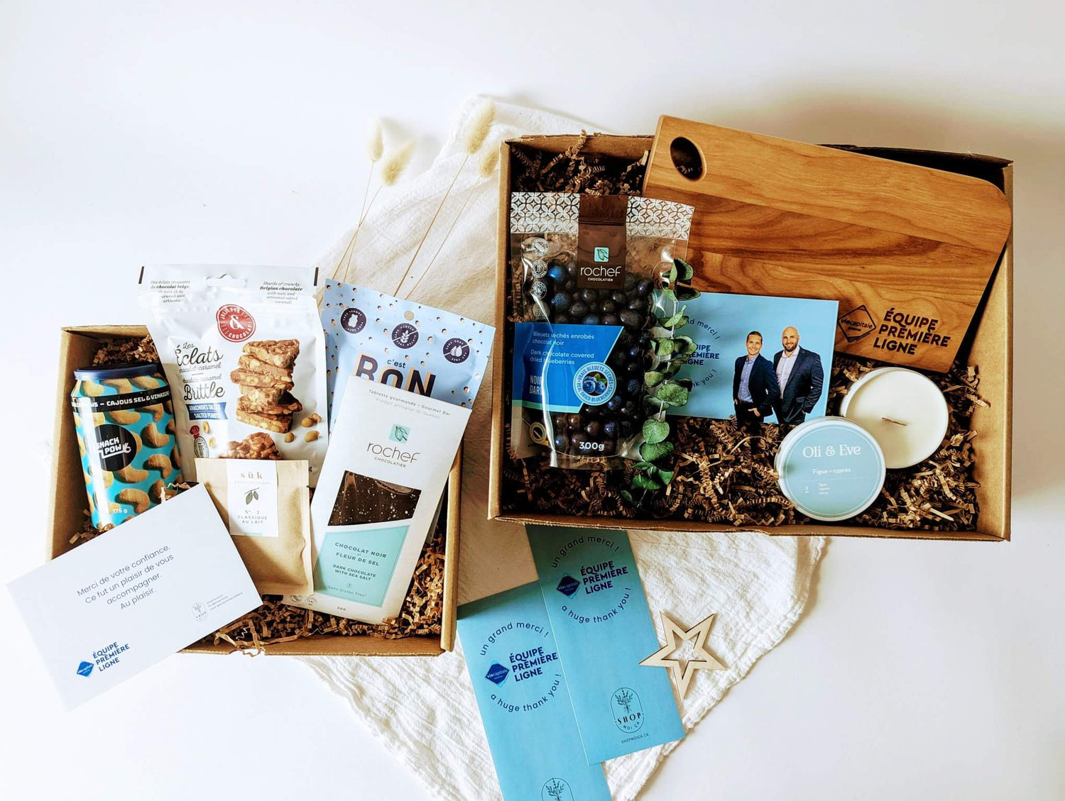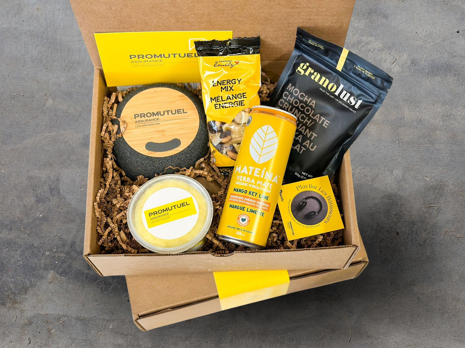notre concierge corporatif vous proposera des boîtes personnalisées aux couleurs de votre organisation, à commander via notre portail corporatif sécurisé. Profitez d’un service clé en main, on s'occupe de tout, de l'assemblage à la livraison des boîtes à chaque employé ou client, partout au Canada.